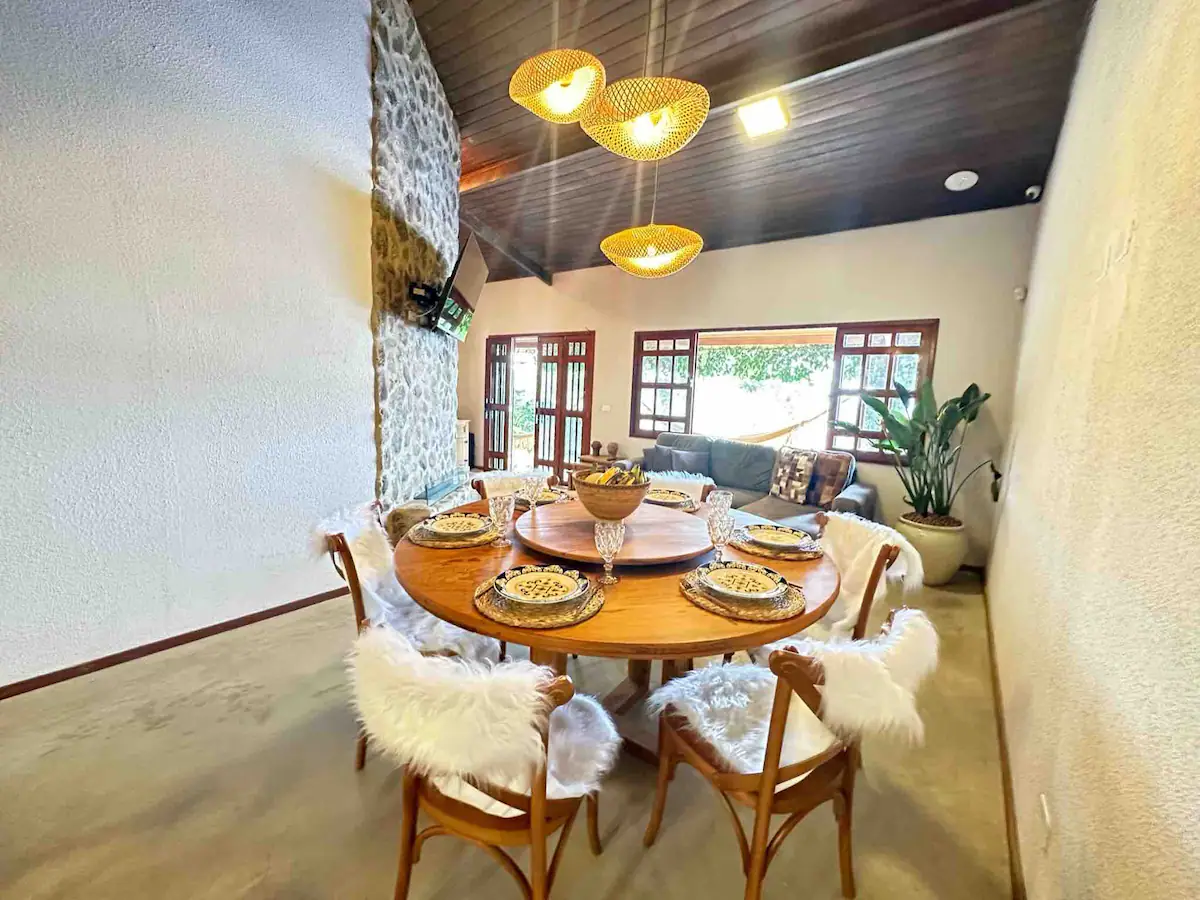 Nesta aconchegante casa, o hóspede terá todo o conforto de uma casa aquecida, principalmente para as noites de inverno da nossa Serra negra que já chegaram a 10 °C. Contamos com 2 lareiras além de piscina e hidromassagem aquecidas.