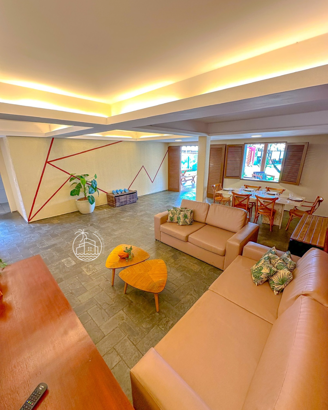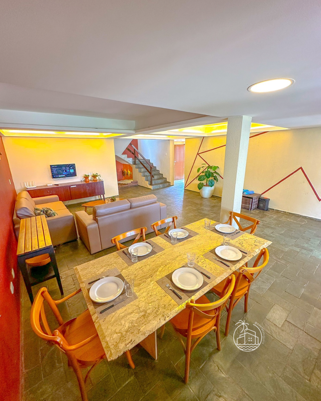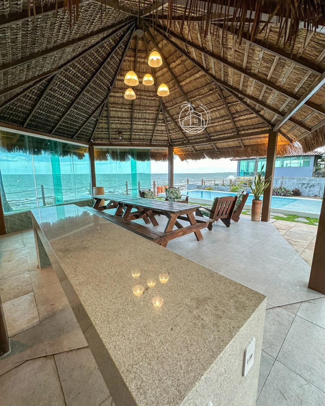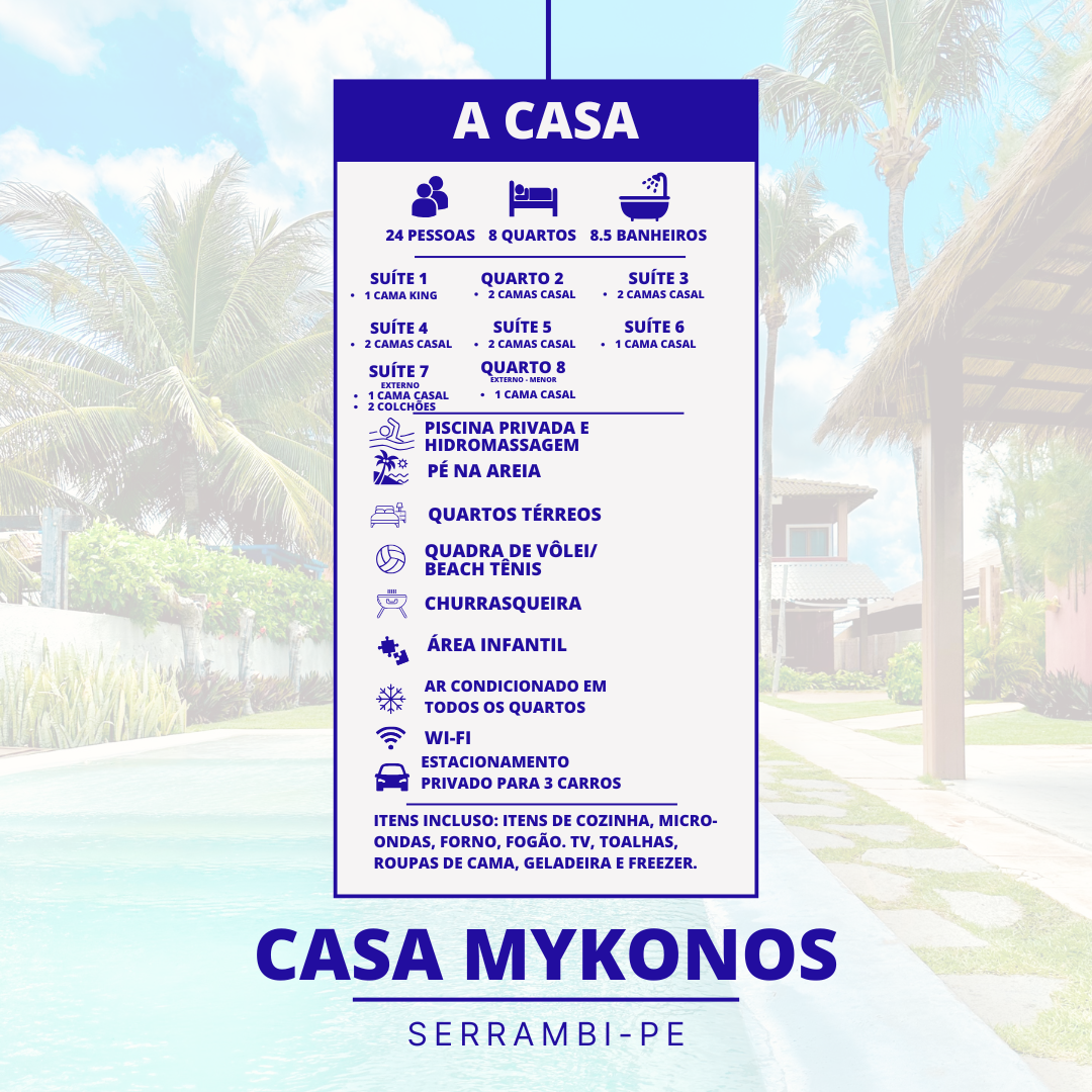 Enorme casarão na beira mar da praia mais exclusiva de Pernambuco. A casa Mykonos é equipada para receber grupos grandes. Além de uma área de lazer bastante convidativa para suas férias.